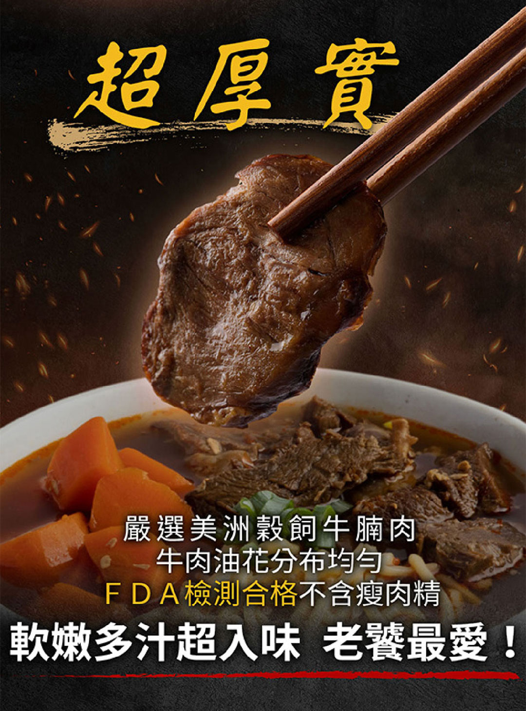 台灣知名牛肉麵品牌,嚴選鮮嫩牛肉,湯頭濃郁,麵條Q彈,多樣湯底滿足不同口味。