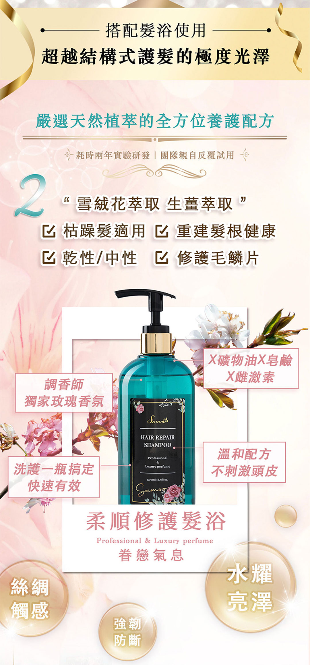 高效護髮品牌,質地細膩易起泡,洗後髮絲柔順不打結。